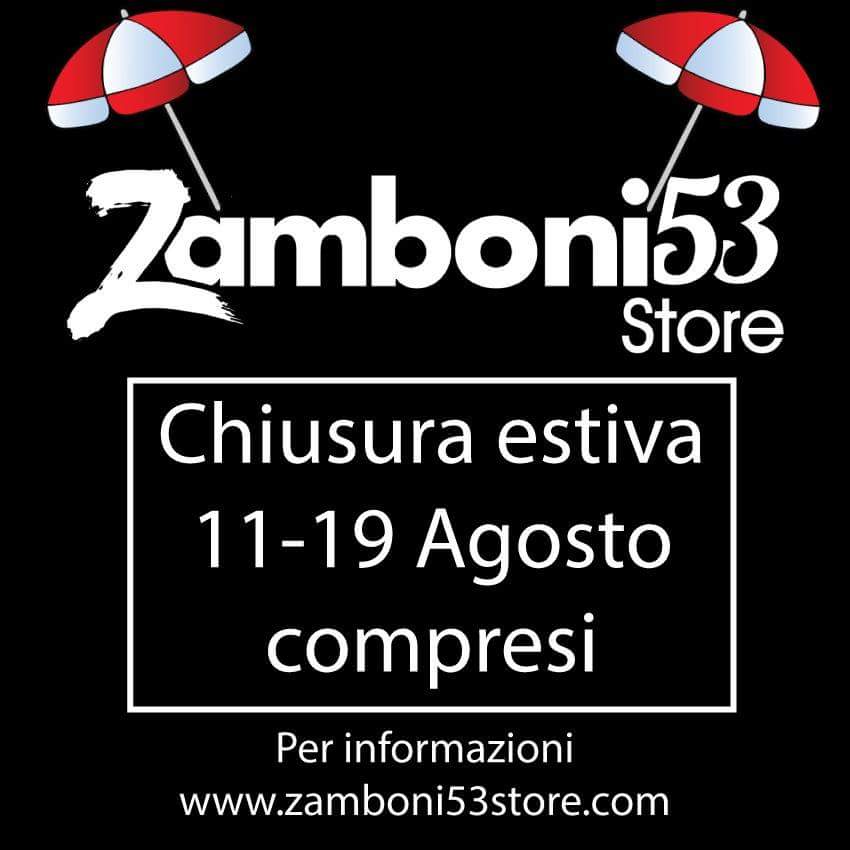 Vi informiamo che Zamboni53 Store sará chiuso per ferie da sabato 11 Agosto a domenica 19 Agosto compresi; riaprirà al pubblico lunedì 20 Agosto con orario regolare dalle 11 alle 19:15.