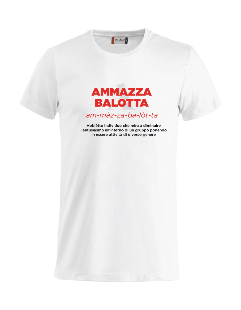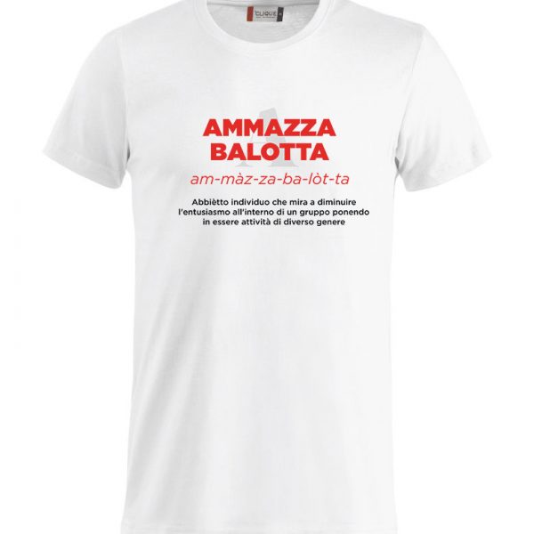 In vendita da Zamboni53 Store per la linea “il regaz di Bolo” la T-Shirt Ammazzabalotta bianca con la scritta rossa e il testo in nero come da foto.