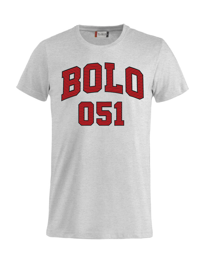 In vendita da Zamboni53 Store per la linea “il regaz di Bolo” la T-Shirt Bolo 051 grigia con la scritta rossa e nera come da foto