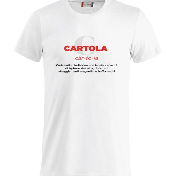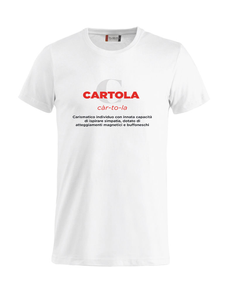 In vendita da Zamboni53 Store per la linea “il regaz di Bolo” la T-Shirt Cartola bianca con la scritta rossa e il testo in nero come da foto.