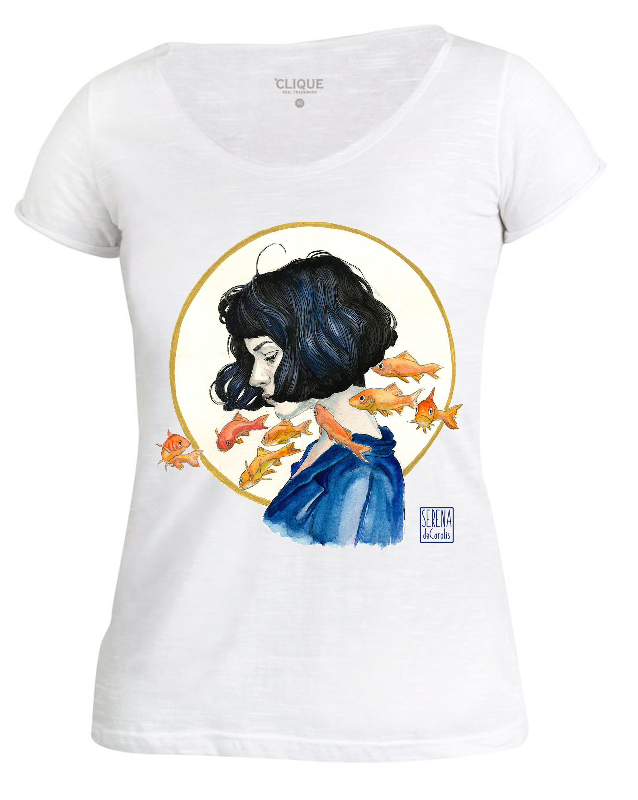 In vendita da Zamboni53 Store per la linea “Serena De Carolis” la T-Shirt da donna con il disegno fatto a mano da Serena con colori vivaci e linee sinuose a matita, segli il disegno che più preferisci tra le opere di Serena, per avere anche tu una maglietta unica nel suo genere!