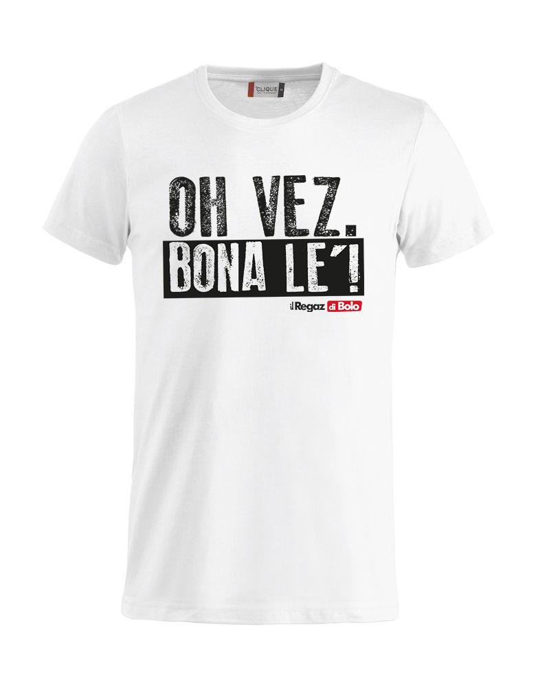 In vendita da Zamboni53 Store per la linea “il regaz di Bolo” la T-Shirt Oh Vez Bona Le’ bianca con la scritta nera