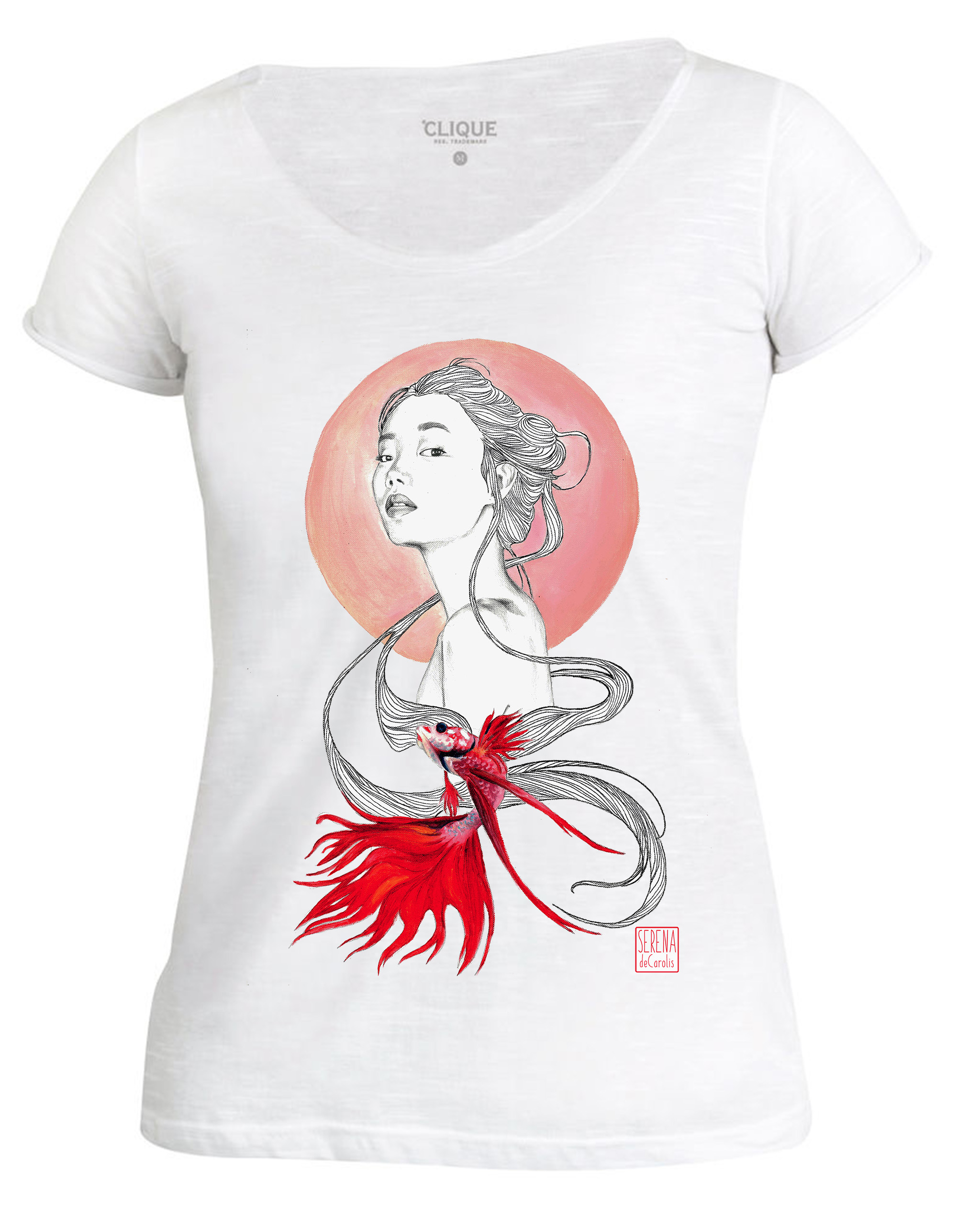In vendita da Zamboni53 Store per la linea “Serena De Carolis” la T-Shirt da donna con il disegno fatto a mano da Serena con colori vivaci e linee sinuose a matita, segli il disegno che più preferisci tra le opere di Serena, per avere anche tu una maglietta unica nel suo genere!