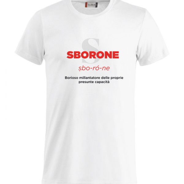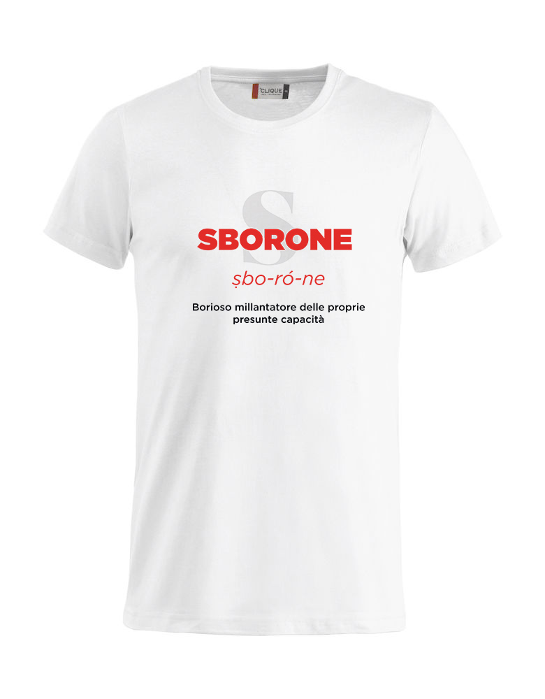 In vendita da Zamboni53 Store per la linea “il regaz di Bolo” la T-Shirt Sborone bianca con la scritta rossa e il testo in nero come da foto.