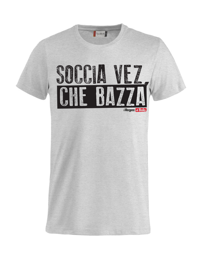 In vendita da Zamboni53 Store per la linea “il regaz di Bolo” la T-Shirt Soccia Vez Che Bazza grigio con la scritta nera