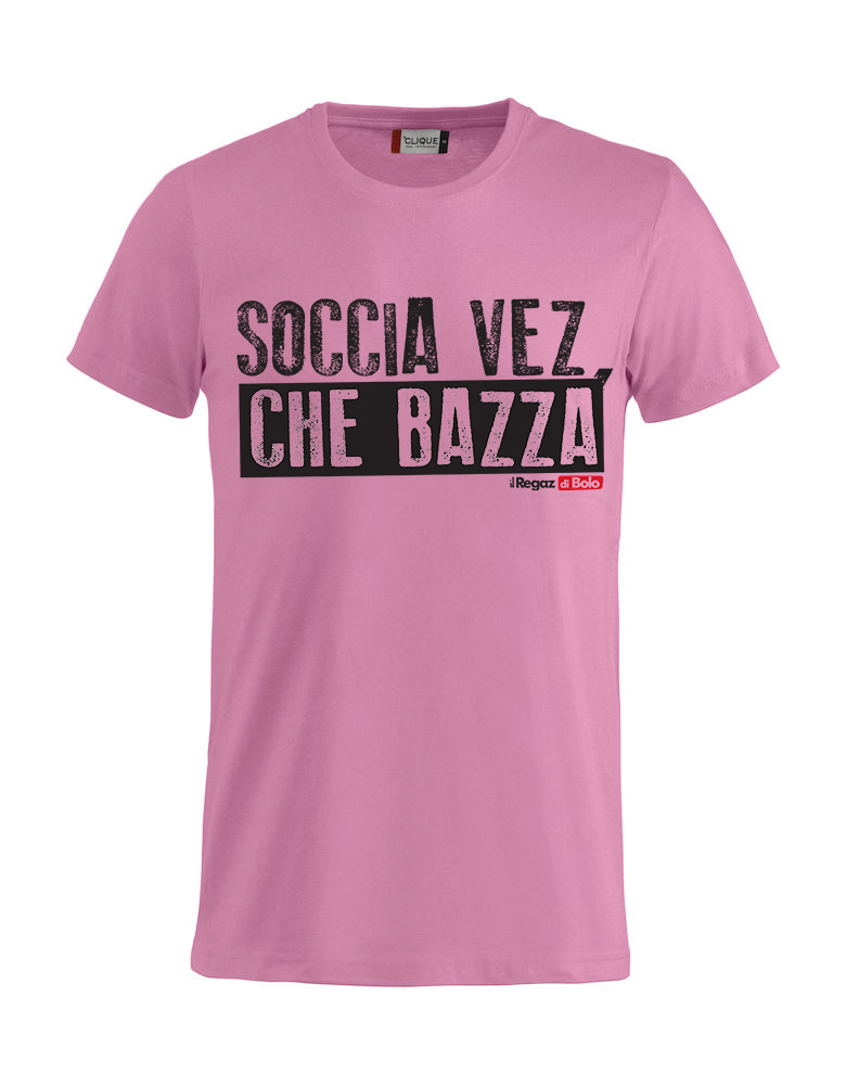 In vendita da Zamboni53 Store per la linea “il regaz di Bolo” la T-Shirt Soccia Vez Che Bazza Rosa Brillante con la scritta nera