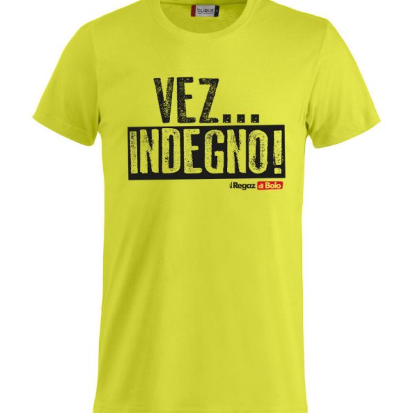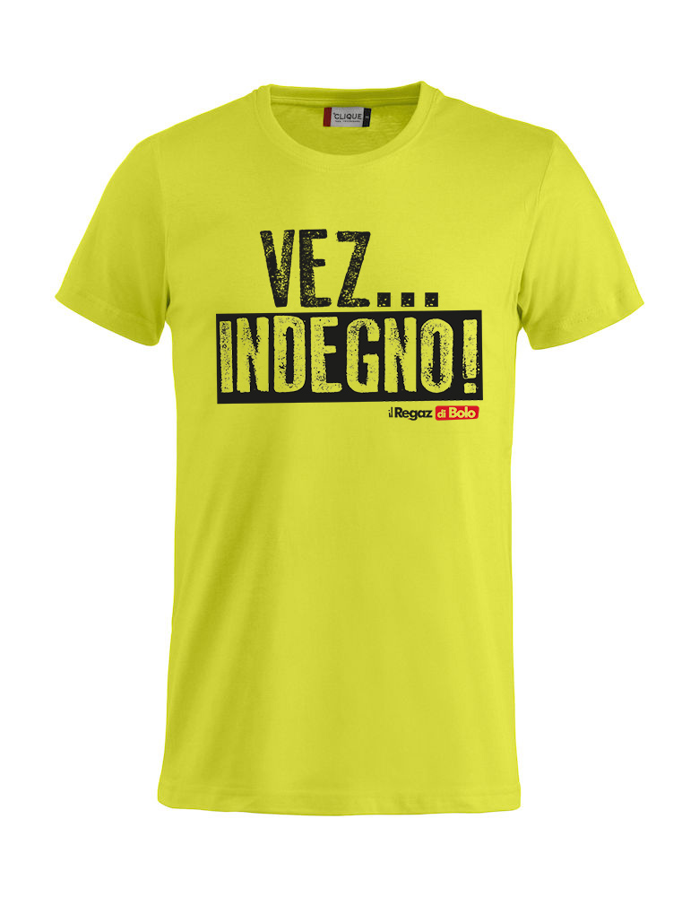 In vendita da Zamboni53 Store per la linea “il regaz di Bolo” la T-Shirt “Vez Indegno” color Verde Intenso con la scritta nera come da foto