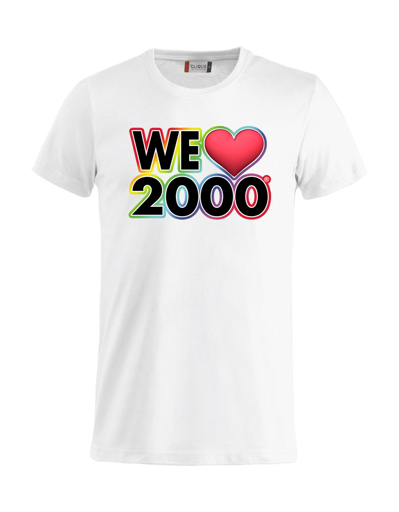 In vendita da Zamboni53 Store la linea di T-Shirt di We Love 2000, la prima festa anni 2000 d’Italia.
