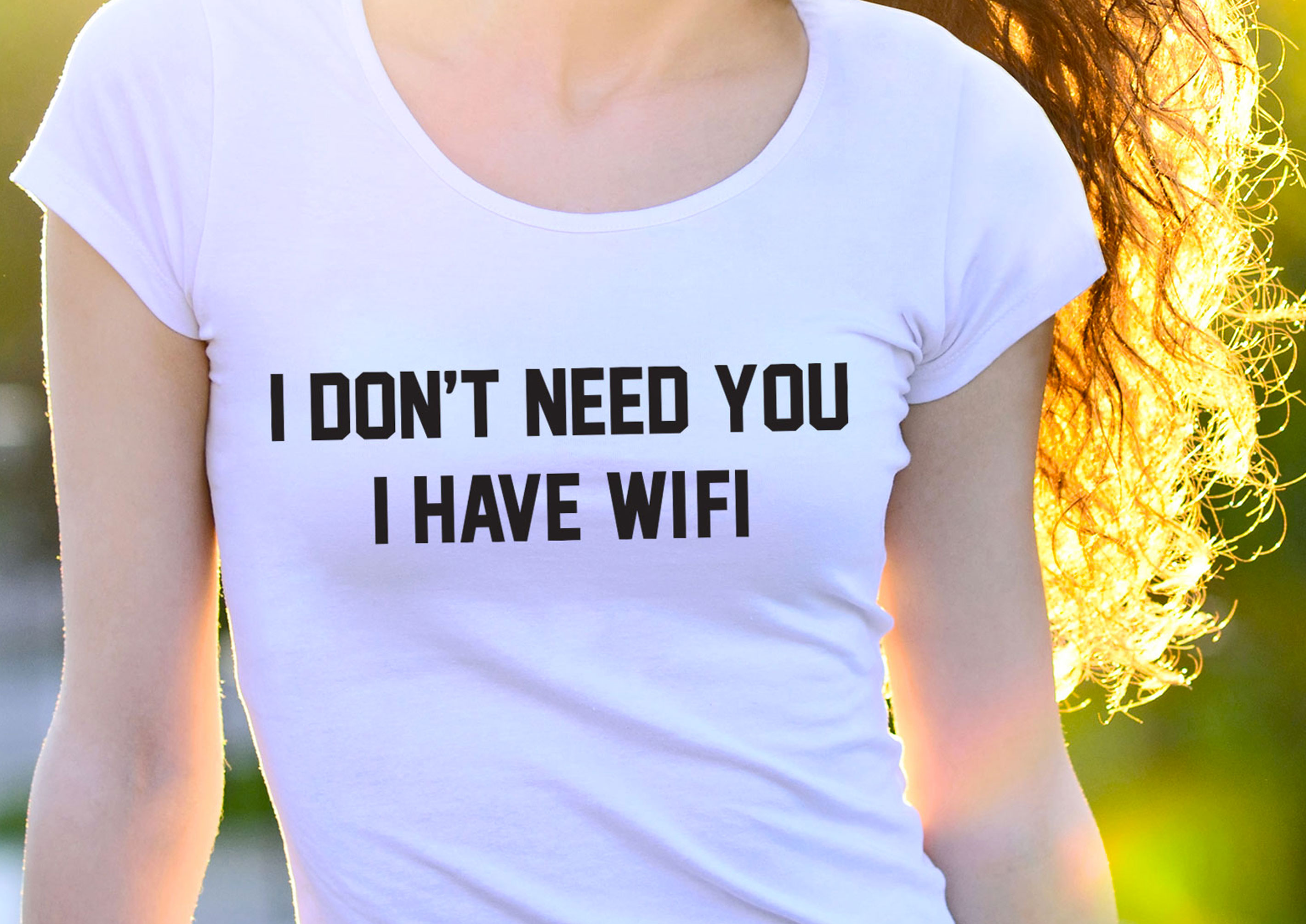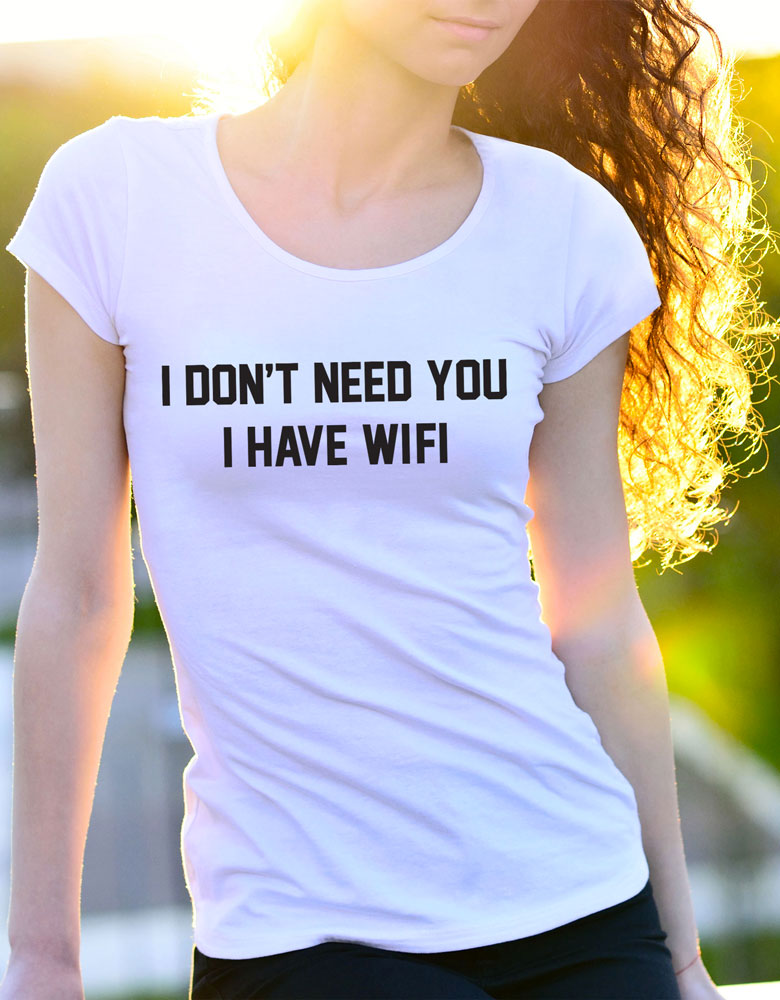In vendita da Zamboni53 Store per la nuova linea T-53 la T-Shirt WIFI bianca con la scritta nera I DON’T NEED YOU I HAVE WIFI.